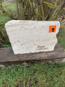 But it really was a fun trip and so here’s some reflections on why you should spend your vacation walking. We are long distance walkers so a mere 11 days and 238km was a warm up really, or actually a warm down, because we did Cluny (France) to Aulla (Tuscany) last year (around 1000km), two previous Caminos from Cluny to Santiago (Spain) in 2011 via the Norte/Primitevo (2038km) and 2016 via Frances (1900km). We’ve got Aulla to Rome (not sure how far but it’ll take three weeks) in September this year…well, maybe! The walk we just completed was following the Tau-dove signs on the Chemin D’Assise (ornage sticker pictured above which are dotted around on lampposts, walls and trees to follow) which started in Cluny, and we were finishing the section off to Assisi. Because we are setting a novel on the walk, and we found out having got to Aulla you can pick up the Via Francigena and get to Rome faster, we thought our characters would do this – but we wanted to finish the dove walk. Before walking this time, we spent a few days going to the towns on the Francigena so we could write the book draft. Seems like this might have been a really smart move Italy/travel is off the agenda for a while. This of course is an extra reason for us to walk – research!