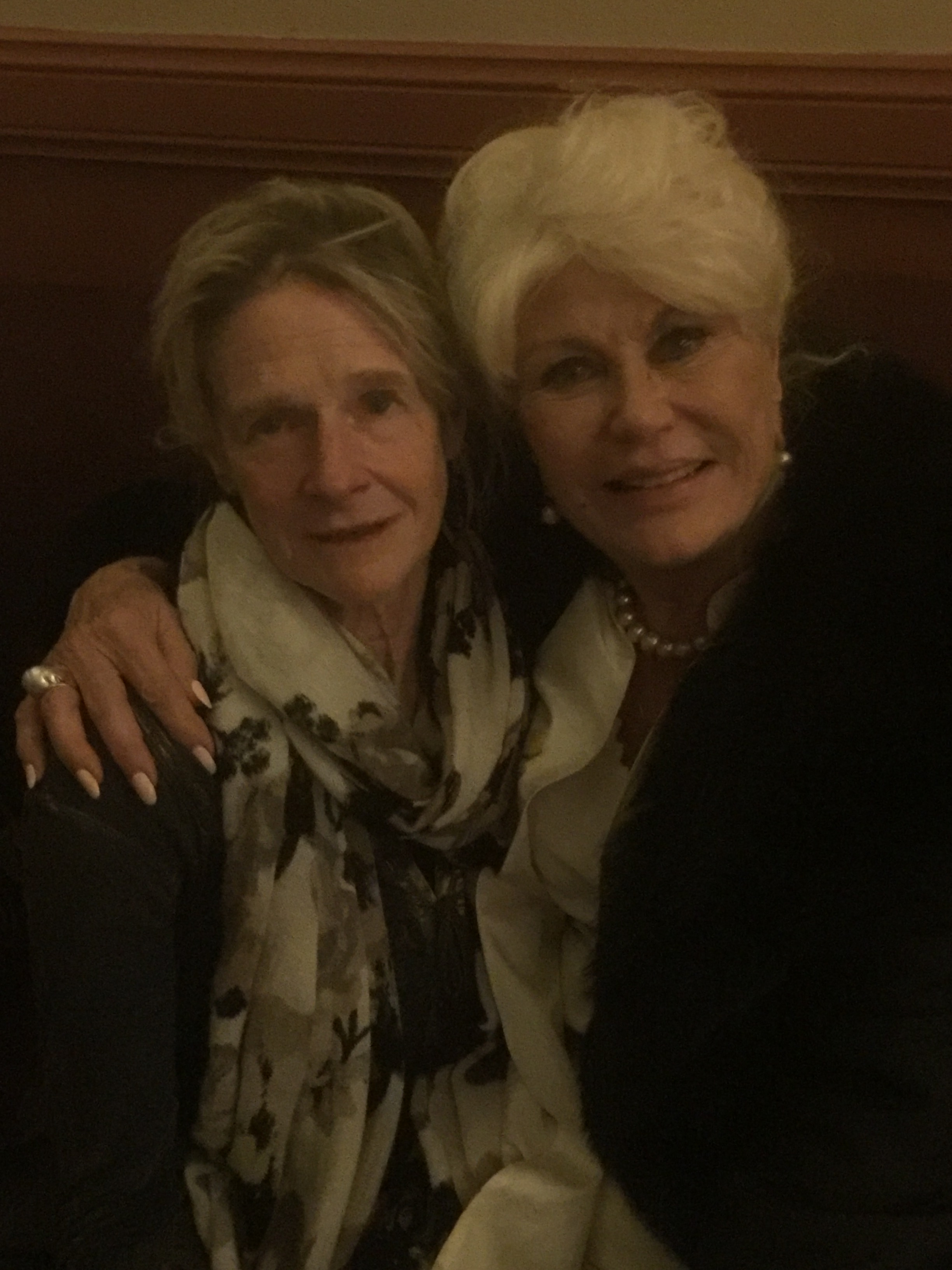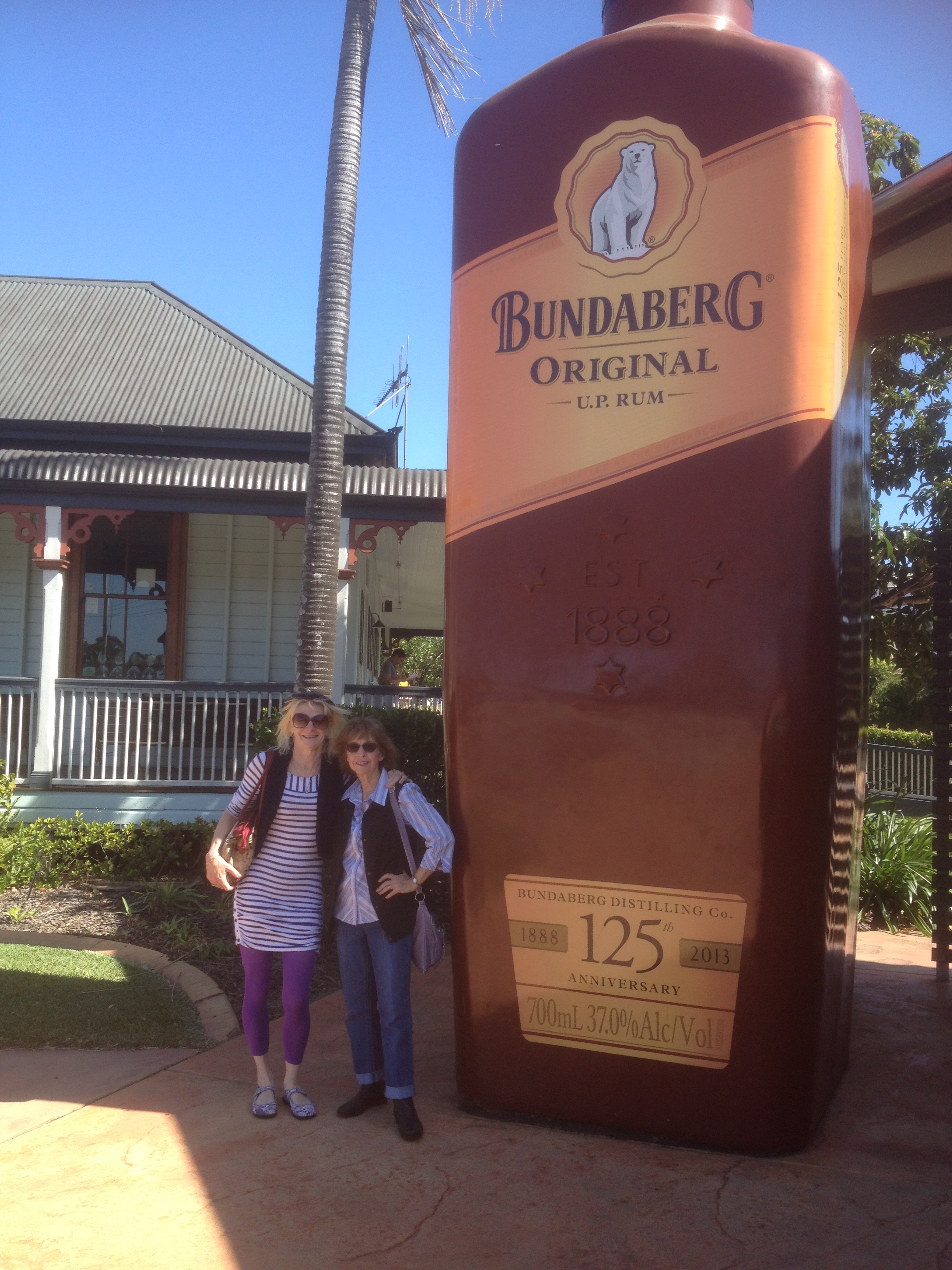 Her with Sandy Curtis the organiser (and the big bottle of Bundy…)